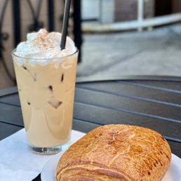 Love the ambiance here! Definitely busier and more "loud" than the typical quiet coffee shop. I would come here with friends to catch up rather than expect a quiet place to work. The espresso bean they use in their beverages is PERFECT: nutty and smooth, not at all acidic. They had wonderful pastry options here that the baristas continued to replenish throughout the day. Such a great spot for a warm (or iced) coffee. We will be back!